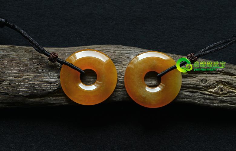 緬甸老坑冰種天然黃翡翠A貨玉平安扣掛件-情侶對佩