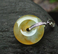 似水流年緬甸老坑天然黃翡冰糯種A貨翡翠玉平安扣吊墜