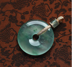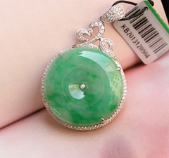 百事大吉天然緬甸翡翠冰糯種滿綠帶鉆平安扣掛件