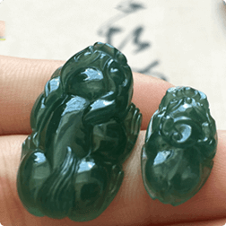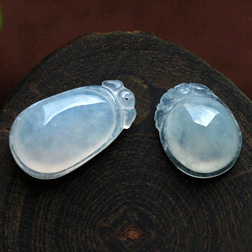 銀霜遍地天然緬甸A貨翡翠老坑冰種貔貅情侶掛件