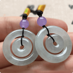 翠色欲流天然緬甸A貨翡翠老坑糯種紫羅蘭平安扣情侶掛件