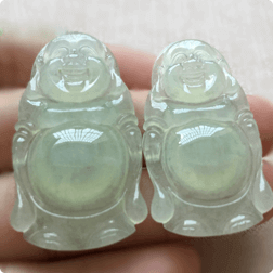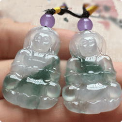 眉似新月天然緬甸翡翠A貨老坑冰種飄花佛公情侶配對掛件