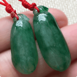 垂柳依依天然緬甸翡翠A貨老坑糯種滿綠福瓜情侶對佩掛件