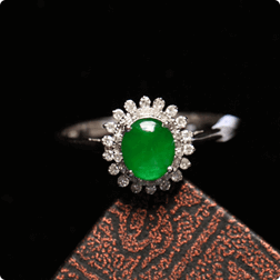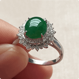 絢爛多姿天然緬甸A貨玻璃種熒光翡翠玉石蛋面戒指-女款