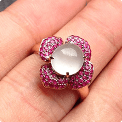 輕盈柔美天然緬甸A貨紅翡冰種鑲嵌戒指掛件