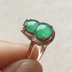 翩若驚鴻天然緬甸老坑A貨冰玻種滿綠翡翠隨形女款金鉆戒指