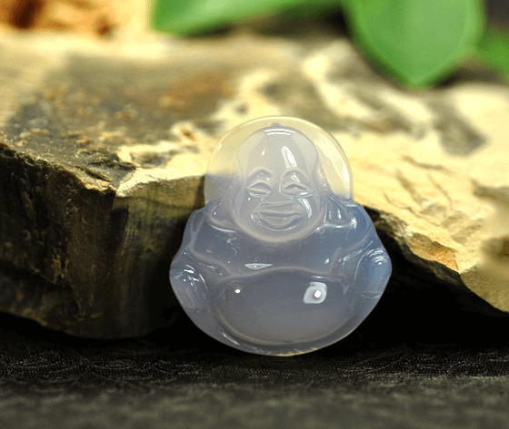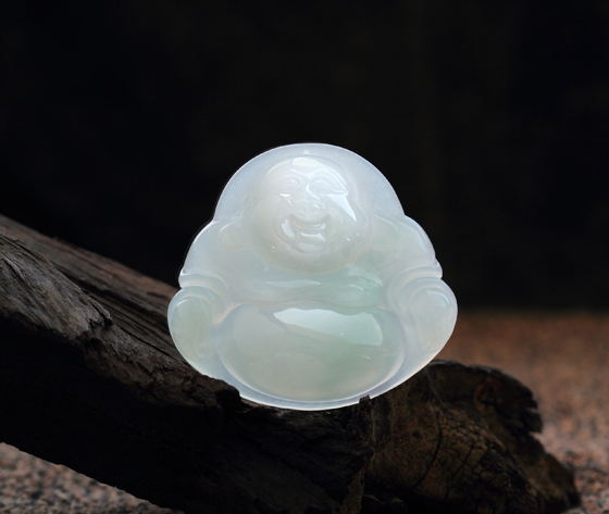 笑口常開緬甸天然A貨翡翠糯種佛公掛件